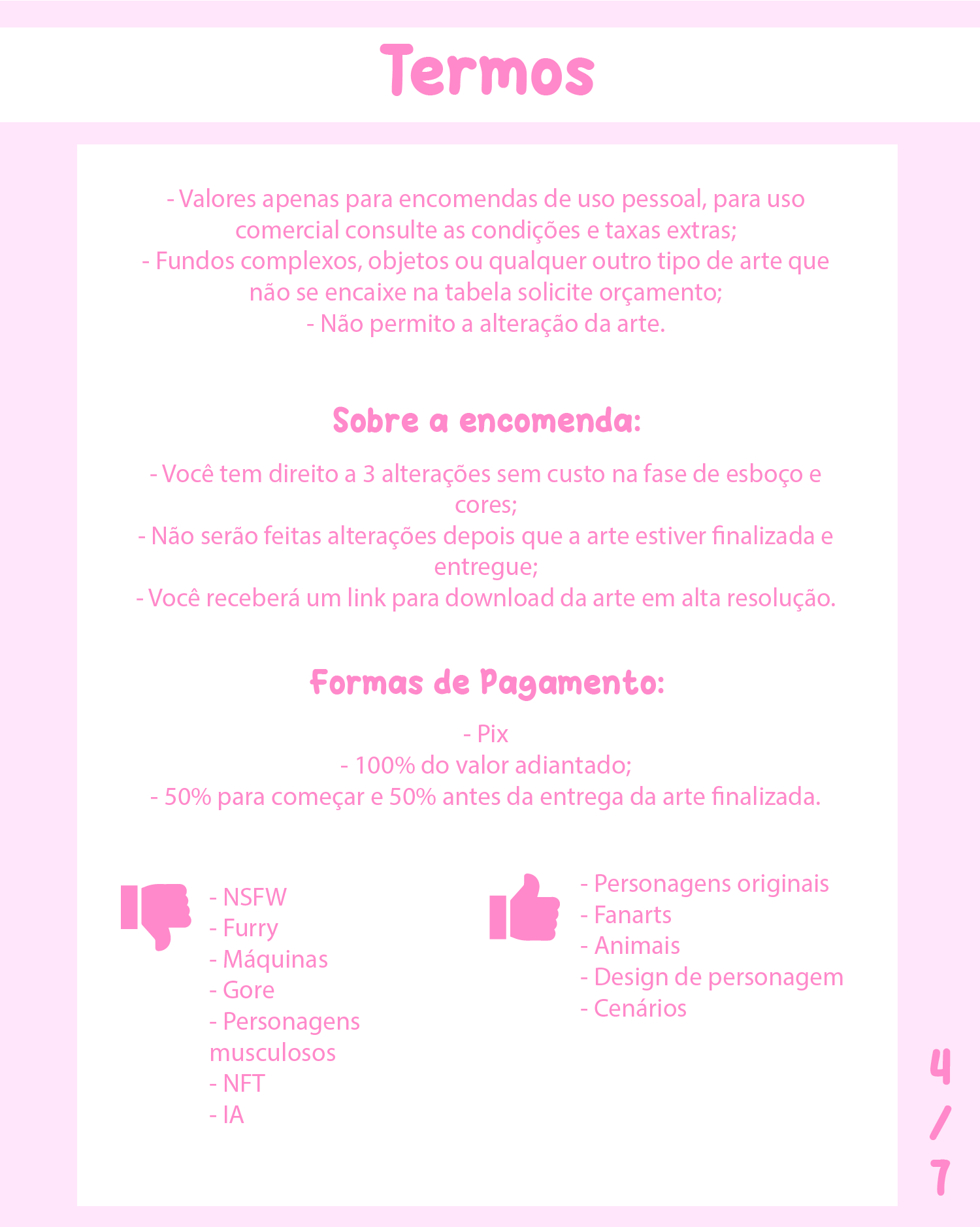 PT: Oi! Trabalho com encomendas desde 2021. Meu estilo se baseia em animes 2D, gosto de desenhar personagens femininas e coisas fofas